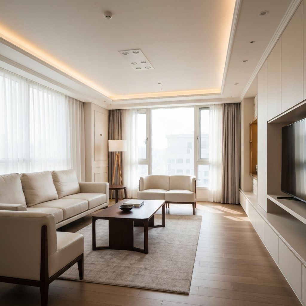 가족이 모이는 거실을 품격 있고 아늑하게. 맞춤 가구 배치와 조명 설계로 특별한 공간을 만들어 드립니다.